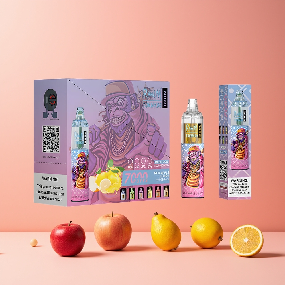 RandM Fumot Tornado 7000 Puffs 14ML Mesh Coil Type-C Rode Appel Citroen Belgie Groothandel